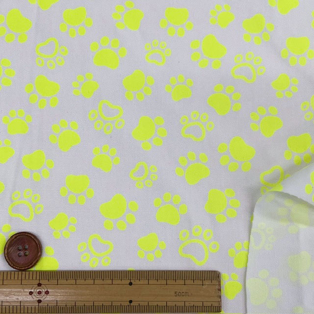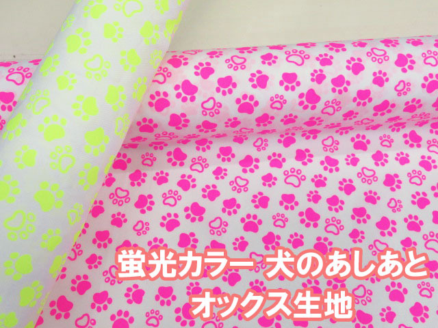 蛍光カラー 犬のあしあと 肉球柄 オックス生地 [hsk824]