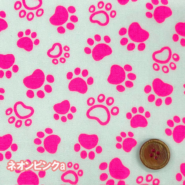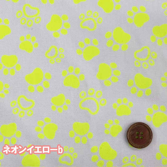 蛍光カラー 犬のあしあと 肉球柄 オックス生地