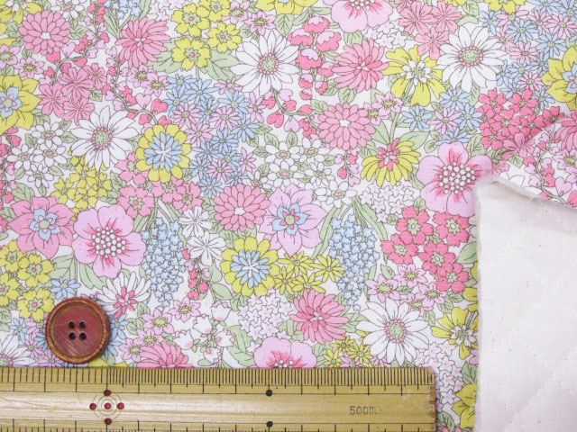 スプリングフラワー フラワー・花柄 ブロード生地 (ピンク系) 全針キルト