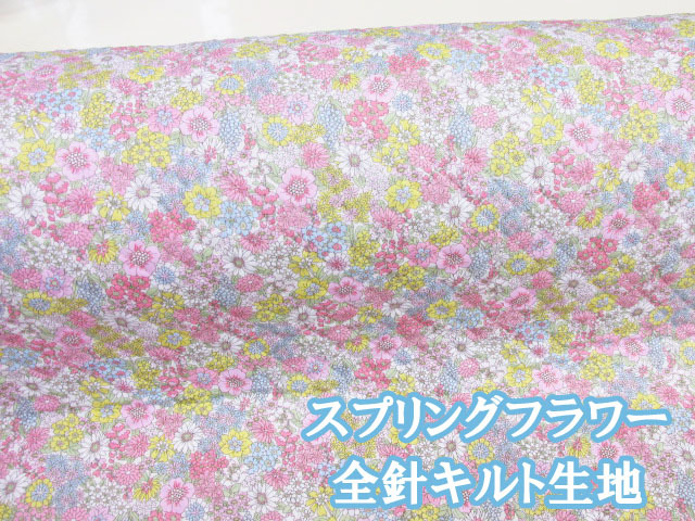 スプリングフラワー フラワー・花柄 ブロード生地 (ピンク系) 全針キルト [qhsk831-a]