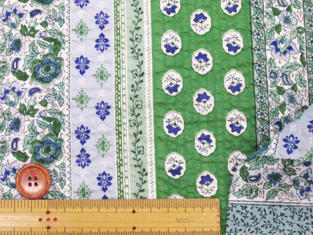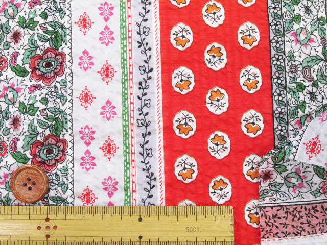 エスニックフラワーストライプ フラワー・花柄 80ローンリップル生地 [hsk832]