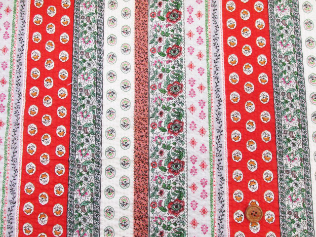 インド更紗を思わせる繊細な花柄や小紋柄を、ストライプ状に組み合わせた美しいデザイン。